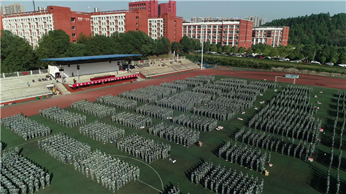 10月22日上午,五千余名新生身着迷彩服,排列整齐,2020级新生军训动员大会在学校田径场举行。我校党委委员、副校长成涛,军训团团长李杰,学生工作处、招生就业处、校团委相关负责人,各二级学院党总支书记、新生班辅导员、全体军训教官以及2020级新生参加动员大会。大会由保卫处处长段可主持。