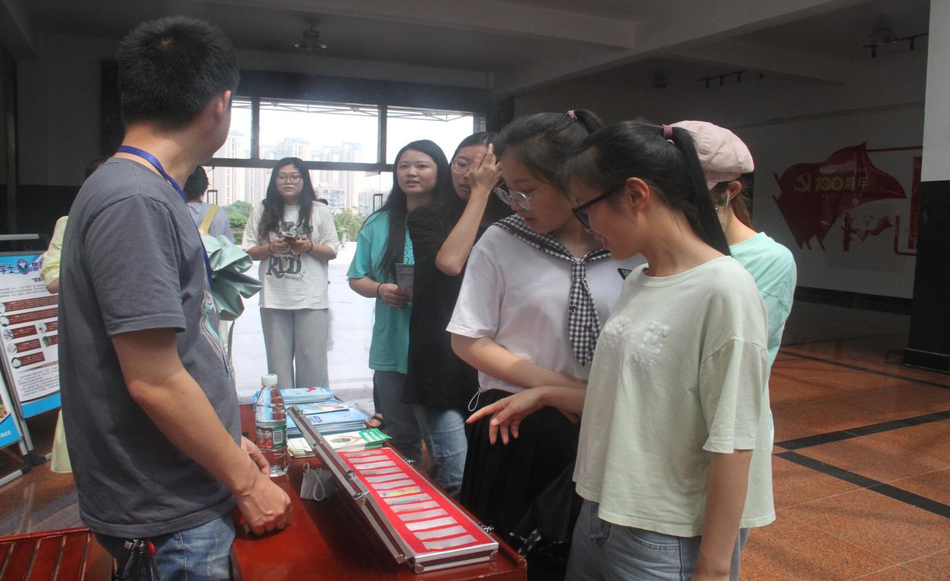 学士街道戒毒办工作人员向学生现场讲解毒品种类