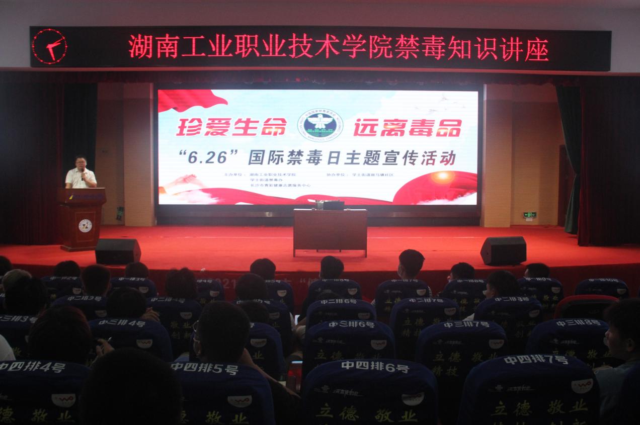本网讯 6月25日下午,一场以禁毒防艾为主题的知识讲座在大学生活动中心进行。此次讲座邀请到长沙市禁毒讲师团陈湘江老师、长沙市学校健康教育志愿服务总队负责人向愈韩老师主讲。学生处、团委、保卫处等部门和二级学院300多名师生代表现场聆听。