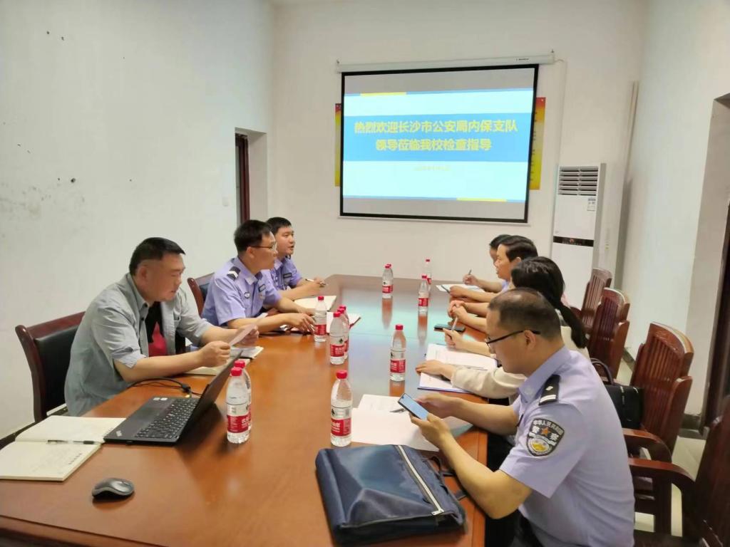 5月5日上午,长沙市公安局内保支队胡福德副书记、谭赟警官,岳麓区公安局张队长等领导一行来校检查指导安全稳定工作。我校保卫部部长彭伟、保卫部副部长张长久及科室负责同志参与会议并陪同检查。