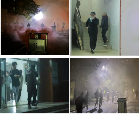 随着燃放烟雾弹的浓浓烟雾冒出,主消控室与楼宿员紧急联动,学生们在警报的哨声中迅速有序撤离了宿舍,消防救援队实施了中级灭火演练,消防安全专家对演练进行了总结点评。