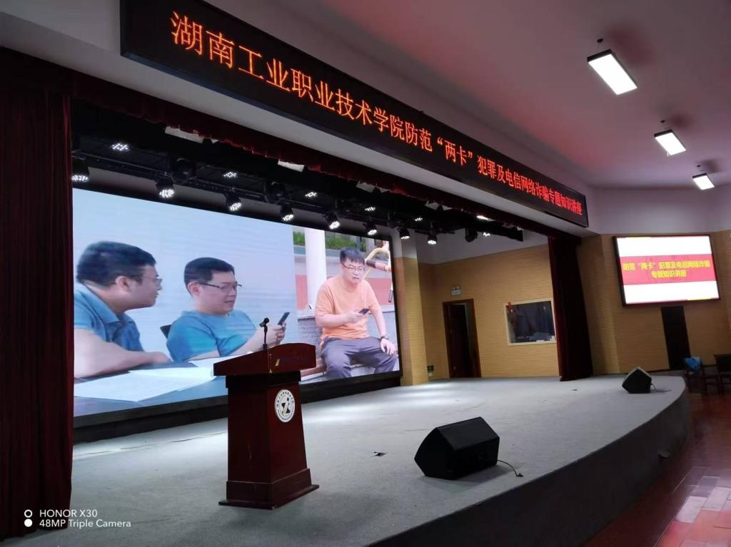 为进一步提升学生的法治意识,有效防范校园网络犯罪,4月16日,学校保卫部邀请了长沙市岳麓区人民检察院第一检察部副主任邬炼为学校500余名师生开展题为“严防电信诈骗、守护“两卡”安全”的专题法治讲座。