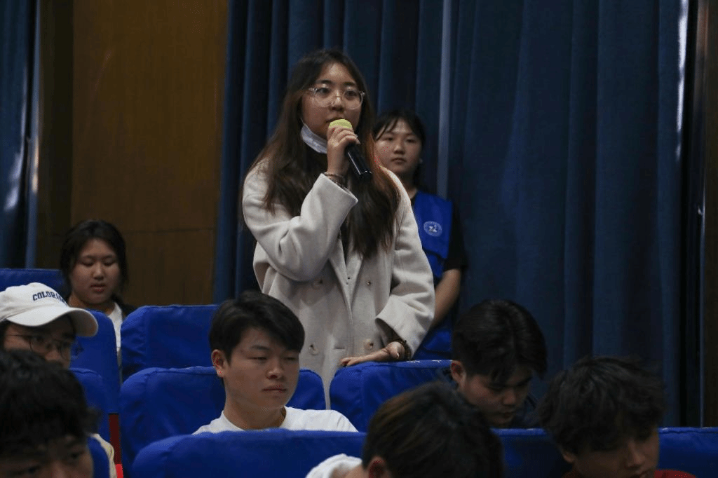 在答疑解惑环节中,来自室内设计2023-1班的曾佳美同学提出了自己的疑惑:作为大一的学生,在创新创业方面应该要哪些方面的准备,对于专业室内设计的同学来说,在创新创业上能不能给一些新的思路?”