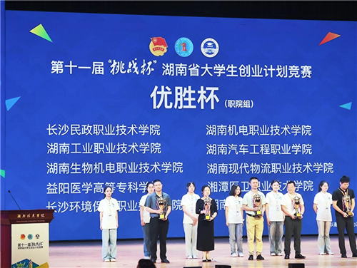 本网讯 6月24日,第十一届“挑战杯”湖南省大学生创业计划竞赛落下帷幕。经过激烈角逐,我校共斩获金奖3项、银奖1项、铜奖1项,金奖数量创历史新高,学校以优异的成绩在高职院校中脱颖而出,荣获“优胜杯”及“优秀组织奖”两项殊荣。