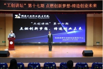本网讯 2022年11月15日,“工创讲坛”第十七期暨“点燃创新梦想,缔造创业未来”主题讲座在我校大学生活动中心举行,由创新创业学院主办,校团委青年创新创业服务中心承办,共200余名师生参加,创新创业学院副院长彭波出席讲座。