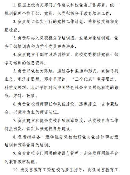 中共九游·官方网站委员会党校工作职责