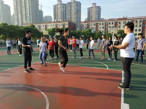 阳光和煦,微风习习,本着“友谊第一,比赛第二”的原则,集合后排列整齐的两班学员在班长及班助带领下来到篮球场开展集体跳长绳活动。