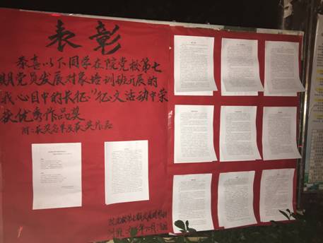 为了纪念红军长征胜利80周年,增强培训班成员的民族自尊心、自信心和自豪感,继承革命的优良传统和优秀品格,院党校第七期发展对象培训班开展以“我心目中的长征”主题的征文活动。并于10月28日在1212教室举行优秀征文颁奖仪式。