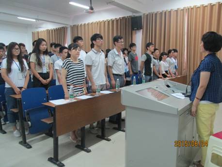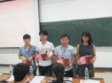 2015年6月24日中午,汽车机械分党校第九期培训班结业典礼在2412教室举行。学院党校副校长、汽车机械分党校校长陈方,两系学生党支部书记和团学联合会指导老师、团总支书记及第九期培训班全体学员参加典礼。典礼由机械工程系学生党支部书记罗德贤老师主持。