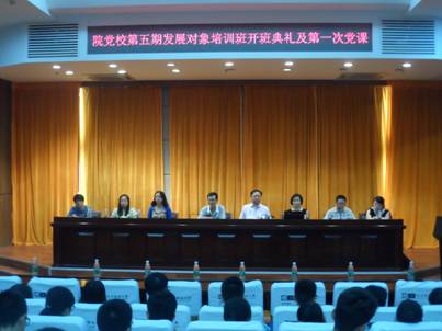 2015年9月22日15:20分,我院第五期党员发展对象培训班开班典礼在图书馆报告厅举行。出席此次开班典礼的有学院党委副书记陈超、学院党校副校长陈方、各院系学生党支部书记以及本期培训班的全体学员。开班典礼由本期培训班班主任、经济管理系学生党支部书记谭群峰老师主持。
