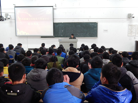 2014年12月26日,汽车机械分党校在2203教室举行了第八期入党积极分子培训班结业典礼。院党校副校长、汽车机械分党校校长陈方,汽车工程学院党总支副书记段可,机械工程系党总支副书记王俊以及相关系部学生党支部负责人和团总支负责人出席典礼。典礼由本期培训班班主任、汽车工程学院学生党支部书记程涛主持。