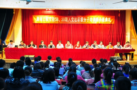 4月20日,党校第38、39期入党校积极分子培训班开班典礼在大学生活动中心举行。院党委副书记、党校校长龙承海,学院调研员、党校常务副校长刘琼,党校副校长、机械工程系党总支书记陈方,党政办、组人处、宣传部、学生处、思政部等部门负责人及各系党总支书记等出席了典礼。典礼由刘琼主持。