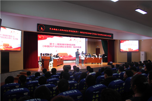 11月24日,党校第十一期发展对象培训班学习贯彻《中国共产党纪律处分条例》知识竞赛在大学生活动中心举行。