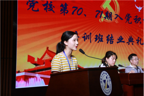 党校第70期培训班班长范念在会上作班务总结发言,她表示在党校将近两个月的学习过程中,既有党性知识的学习,又有主题丰富的实践活动。在党性知识的获取中不仅提升了大家的政治素养,而且还开阔了政治眼界;在各类活动的探索中,乐于助人、团结一致、永不放弃等优秀品质的力量在培训班中得到了传播和学习。