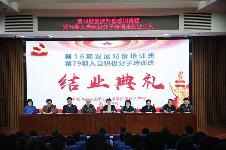 本网讯 4月16日中午,党校第16期发展对象培训班和第79期入党积极分子培训班结业典礼在图书馆报告厅举行。学校党委副书记杨颖、各二级学院党总支书记、副书记、班主任李蕙出席了本次典礼,培训班全体学员参加。典礼由学校党委委员、组织部部长肖望兵主持。