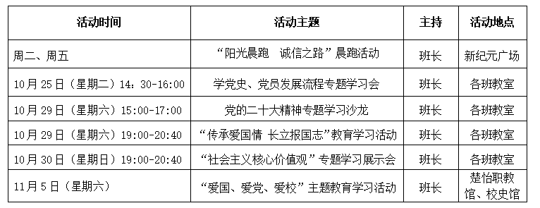 4.学习期间,学员要认真听课并做好学习笔记,自觉遵守培训纪律,不得从事与课堂无关的其它事情,每次课完成一篇听课心得,在下一次例会时交给组长。结业时另上交一篇学习培训小结。学员要积极主动参加培训班组织的各项主题实践活动,在活动中提升综合素质。