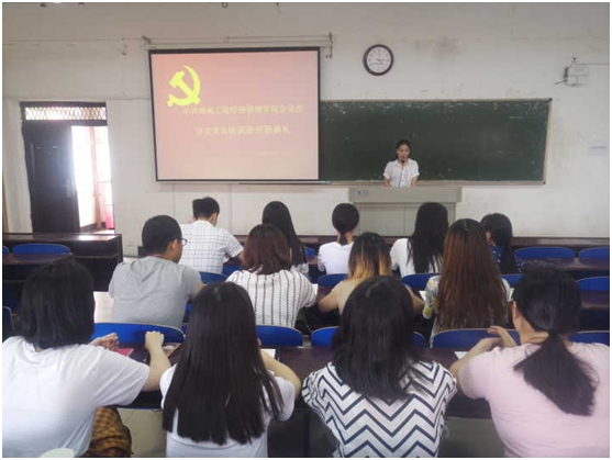 2018年5月29日下午3:30经济管理学院分党校学生党员培训班在1304举行开班典礼,学院党总支书记李树德、学生支部书记彭瑛、学院团总支书记盛娜出席参加本次开班典礼。