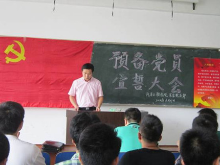 最后,段可书记为本次大会作总结讲话。首先,他对本次新发展的党员表示了热烈的祝贺,并对他们提出了几点希望和要求。他要求,一是要在学习生活中真正按照入党誓词去实践,严格要求自己;二是在思想品质上,要做一个强者和勇者;三是今天在党旗下庄严宣誓的新党员,要紧密团结在党的旗帜下,积极工作,扎实学好文化知识,服务社会,为身边的同学树立良好的榜样,争取成为党组织中的一名优秀成员。
