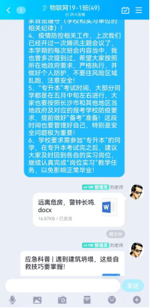 会上院党总支书记王俊特别提出,学校以育人为本,在教育学生的同时,应尽力保证学生的安全。一切活动的的开展以学生的安全为先。并强调各位老师要迅速召开安全教育主题班会,对于19级在外实习学生采取云班会形式,20、21级学生则采取线下讲解PPT的形式。