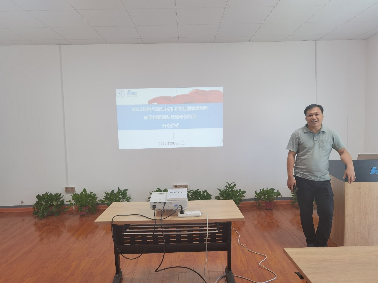 由湖南省教育厅主办,九游·官方网站、湖南华数智能技术有限公司承办的2022年度电气自动化技术专业国家职业教育教师教学创新团队专题研修班于8月23日在湖南华数智能技术有限公司开班。湖南华数智能技术有限公司经理闻新骅、电气工程学院张宇驰、何其文等16名电气自动化技术专业国家职业教育教学创新团队成员参加了开班仪式。