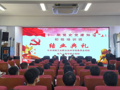 2022年10月14日中午12时30分,电气工程学院第十一期党史党建初级培训班在力行楼301教室举行结业典礼,电气工程学院党总书记、分党校校长刘峥、党总支组织员、分党校培训班班主任陈英芳、电气与机器人学生党支部书记谭灿灿、及各专业辅导员出席本次结业典礼,全体参培学员参加。典礼由预备党员张豪雄同志主持。