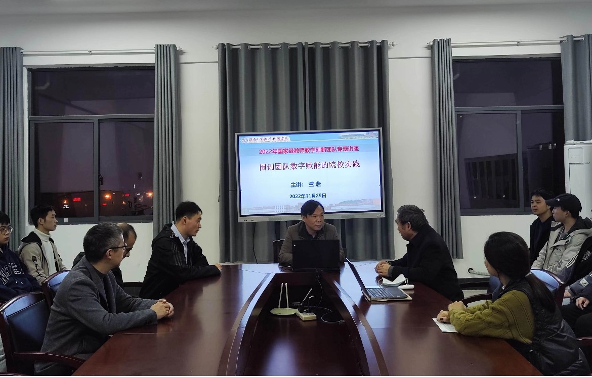 面对新驱动和新赋能,职业教育的改革要体现出以创新为驱动的教师教学创新团队发展要求,2022年11月29日,电气自动化技术专业国家教学团队邀请湖南师范大学兰浩副教授到我院为电气自动化技术专业国家级教师教学创新团队进行了“国创团队数字赋能的院校实践”专题讲座。