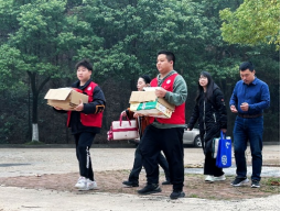 (志愿者帮助参赛选手搬运赛事物资)