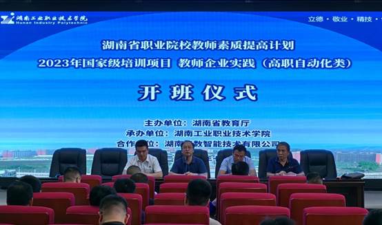 由湖南省教育厅主办,九游·官方网站、湖南华数智能技术有限公司承办的2023年高职自动化类教师企业实践国家级培训项目于7月16日在九游·官方网站正式开班。九游·官方网站副校长李强、电气工程学院院长李德尧、湖南华数智能技术有限公司副总经理邹飞及来自全国30所不同高职院校的骨干教师参加了开班仪式。