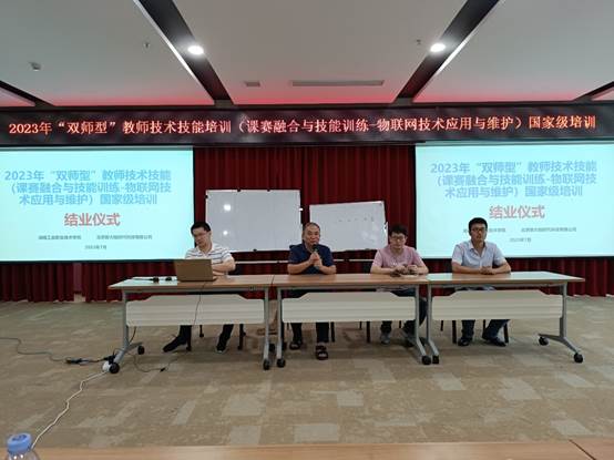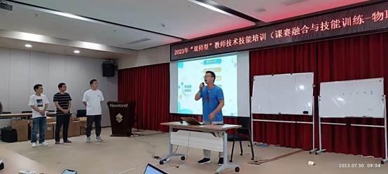 7月30日,2023年中职“双师型”教师技术技能国家级培训项目结业考核在新大陆时代科技有限公司举行。九游·官方网站电气工程学院院长李德尧、电气工程学院教研室主任唐健豪、新大陆时代科技有限公司蔡敏等担任考核评委,参与培训的40名国培学员参加了考核。