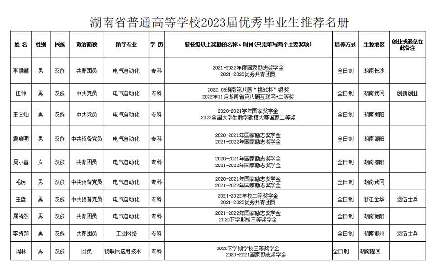 电气工程学院2023届优秀毕业生推荐名册