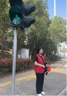 在活动过程中,志愿者们自觉遵守相关要求,相互配合,认真细致的对行人闯红灯、乱穿马路、不佩戴安全头盔骑行等不文明、不规范的行为进行劝阻,积极主动地向行人普及了文明交通常识,提醒行人注意交通安全,文明出行。志愿者们每一句真诚的话语,每一次温馨的提示都深深的打动着行人的心,他们纷纷向志愿者们表示感谢,为志愿者们点赞。