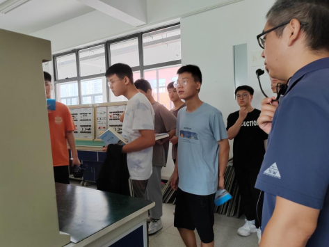 当天上午,新生按照班级分批次参观实训室。参观前,新生提前来到指定地点集合,各负责人老师进行人数清点,并对新生提出要求:1.参观实训室要穿绝缘鞋,实训服装,不要穿拖鞋和随意动实训设备。2.专业介绍和参观实训室学生必须遵守纪律,关闭手机。