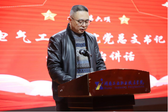 24届团总支副书记杨涛做就职演讲,他表示将以饱满的热情和坚定的信念,继承和发扬学院的优良传统,以服务同学为宗旨,以提升学院影响力为目标,在学风建设、活动创新、学生权益维护等方面积极作为,努力打造更具活力与凝聚力的电气工程学院团学组织。