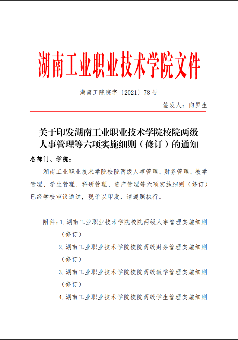 关于印发九游·官方网站校院两级人事管理等六项实施细则(修订)的通知