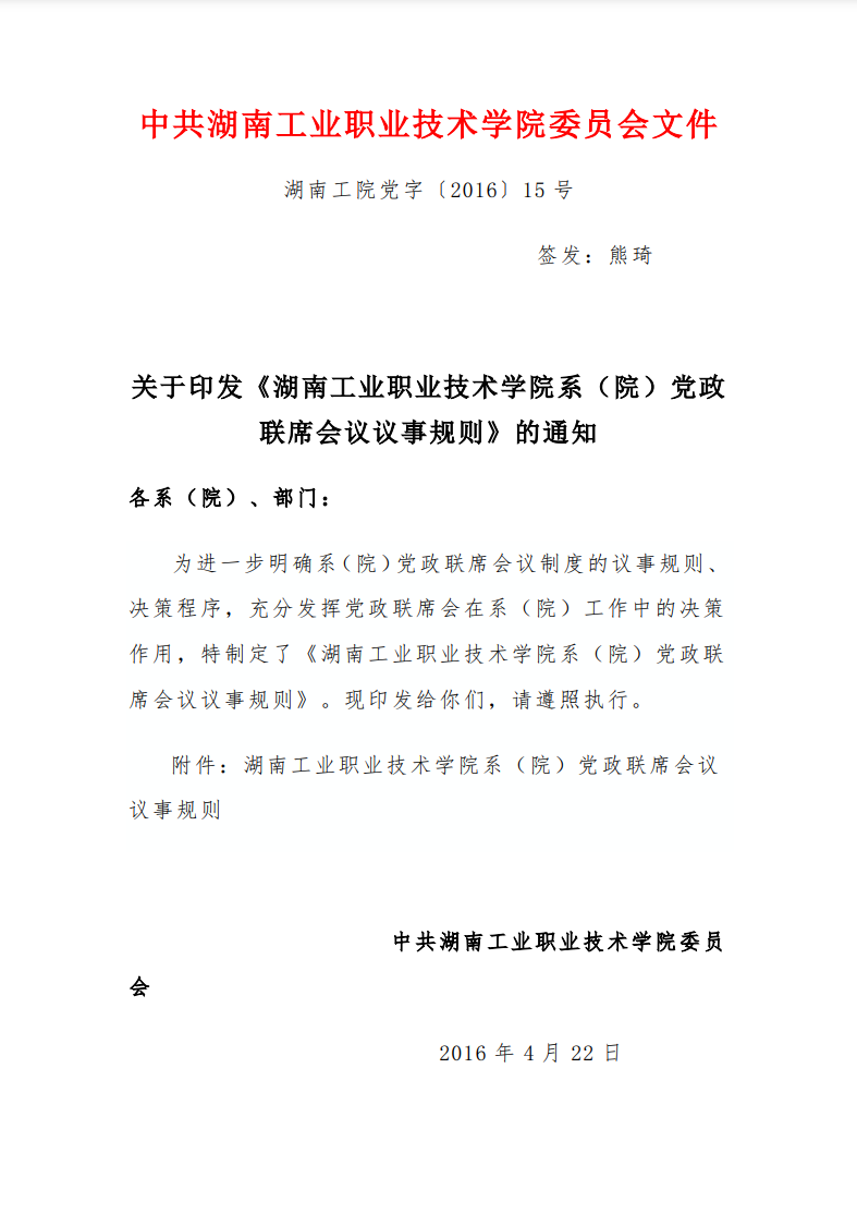 关于印发《九游·官方网站系(院)党政联席会议议事规则》的通知