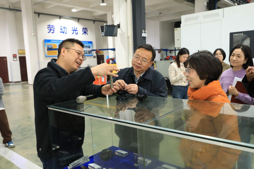 刘怀德一行参观了创新创业学院、数控技术实训中心、智能制造实训中心、电气工程学院实训室等场所。教育博士研究生们对我校的办学理念、实训条件、育人模式有了更加直观的认识与体会。