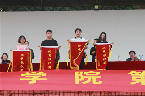 邓建国宣布了学生代表队和教职工代表队获奖名单:在学生组比赛中,获得优秀组织奖的学院分别是工业设计与艺术学院、电气工程学院、信息工程学院、商务贸易学院;机械工程学院、汽车工程学院、经济管理学院分别荣获团体总分冠、亚、季军。在教职工组比赛中,获得优秀组织奖的是工业中心分工会,学保机关三分工会获道德风尚奖,经济管理学院分工会、汽车机关二分工会、电气工程学院分工会分别取得团体总分冠、亚、季军。