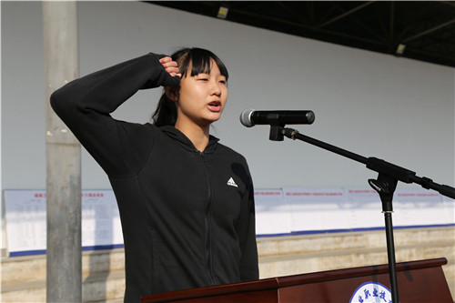 随后,运动员代表、机械工程学院检测2017-1班邹璟怡和裁判员代表、刘星欣老师分别宣誓。