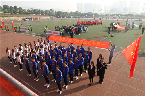 庄严的升旗仪式结束后,校长向罗生致开幕词。他代表全校师生员工,对本次运动会的顺利举行表示热烈祝贺,向为筹备本次运动会付出辛勤劳动的工作人员表示衷心感谢,并预祝本次运动会取得圆满成功。他指出,学校在追求卓越、争创一流愿景的引领下,积极响应党的号召,贯彻落实党的教育方针,促进了校园体育艺术活动的蓬勃发展。他希望学校以运动会为契机,营造体育发展的良好氛围,引导师生员工弘扬“超越自我,敢为人先,追求卓越”的奋斗精神,努力完成“卓越院校”的创建目标。
