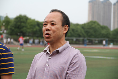 周文发表祝词。他向在本次比赛筹备工作中付出辛勤劳动的老师、学生表示衷心的感谢。他指出,本次联赛是全校教职工展示团结、健康、向上精神面貌的重要平台,希望老师们发扬不屈不挠、奋发向上的体育精神,团结协作共创佳绩。