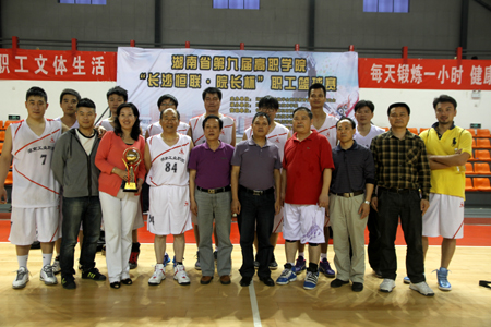 随后,湖南省教科院职成所副所长舒底清、我院党委书记龙承海、院长刘建湘等出席嘉宾为获奖代表队颁奖。省教育厅体卫艺教处处长符润中宣布湖南省第九届高职学院“长沙恒联•院长杯”职工篮球赛闭幕。