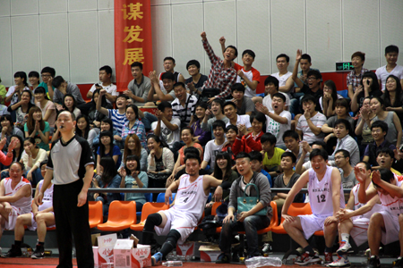 我院师生啦啦队为篮球队员们呐喊、喝彩