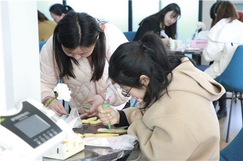 本网讯 阳春三月,万物复苏。为庆祝一年一度的“三八国际妇女节”,3月8日,我校工会组织在行政楼创客俱乐部开展手工烘焙活动,吸引了百余名女教职工参与。