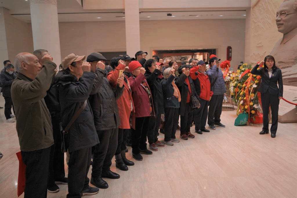 “我志愿加入中国共产党,拥护党的纲领……”,在“敢教日月换新天”的巨型雕塑前,离退休工会党总支书记廖佑莲带领党员重温入党誓词,庄严而坚定的宣誓声响彻党史陈列馆大厅。