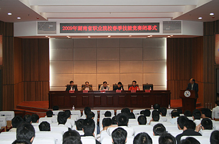 • 2009’湖南省职业院校春季技能竞赛在我院落幕 闭幕式现场 我院院长刘建湘教授作赛事组织工作总结     4月28日上午10点,湖南省职业院校春季技能竞赛闭幕式在我院多功能报告厅举行。