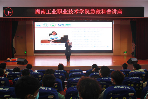12月16日,我校在大学生活动中心开展了一场急救科普讲座。此次讲座由学校后勤处组织,联系学士街道社区卫生服务中心邀请到湖南省肿瘤医院重症医学科护士长胡小弟进行主讲。各二级学院200余名学生代表到场聆听了讲座。