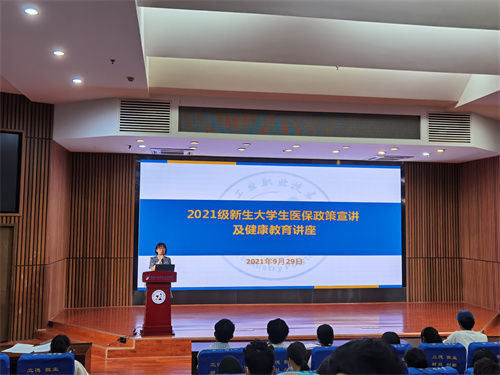 9月29日上午,后勤处在图书馆报告厅开展2021级新生大学生医保政策宣讲及健康教育讲座,各二级学院老师及新生代表近300人参加了培训学习,讲座由后勤处医卫计生科科长彭林主持。
