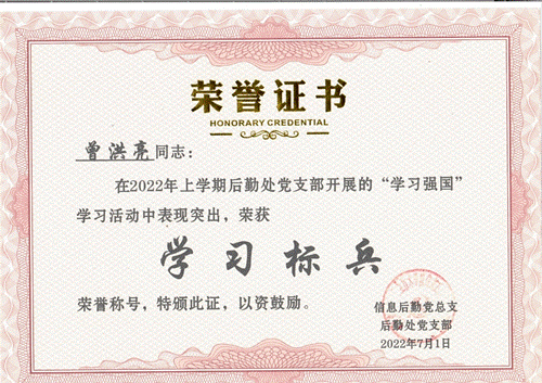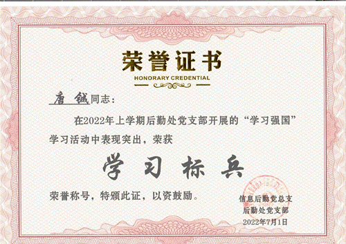 为深入推进“学习型党支部”建设,后勤处党支部利用“学习强国”平台开展了学习竞赛活动,每月公布积分增幅并进行排名。从二月底启动该活动以来,在后勤处全体党员中形成了一波又一波“比学赶帮”的热潮,学习积分你追我赶。通过四个多月学习,大家纷纷表示受益匪浅。通过党支部评选,最终曾洪亮和唐铖两位同志获2022年上学期“学习强国”学习竞赛活动”学习标兵”荣誉称号。希望大家向两位同志们看齐,进一步加强“学习强国”学习,以饱满的热情、踏实的作风、认真的态度投入到学校各项工作中。