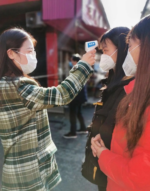 社团成员成为战疫志愿者检测体温