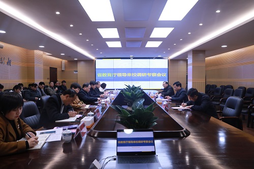 本网讯 3月10日,省教育厅副厅长王仁祥、省教育厅职成处处长崔书芳、省教育厅职成处副处长谢桂平一行三人来我校调研,我校校领导,相关职能部门、二级学院负责人参加调研会,会议由学校校长向罗生主持。